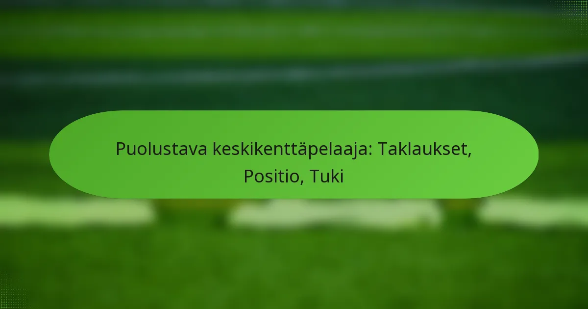Puolustava keskikenttäpelaaja näyttelee ratkaisevaa roolia jalkapallojoukkueessa tarjoamalla puolustavaa vakautta ja helpottamalla siirtymiä puolustuksesta hyökkäykseen. Hänen vastuunsa sisältävät vastustajien taklaamisen, sijoittumisen ylläpitämisen ja hyökkäyspelien tukemisen, samalla varmistaen, että joukkue pysyy puolustuksessa organisoituna.